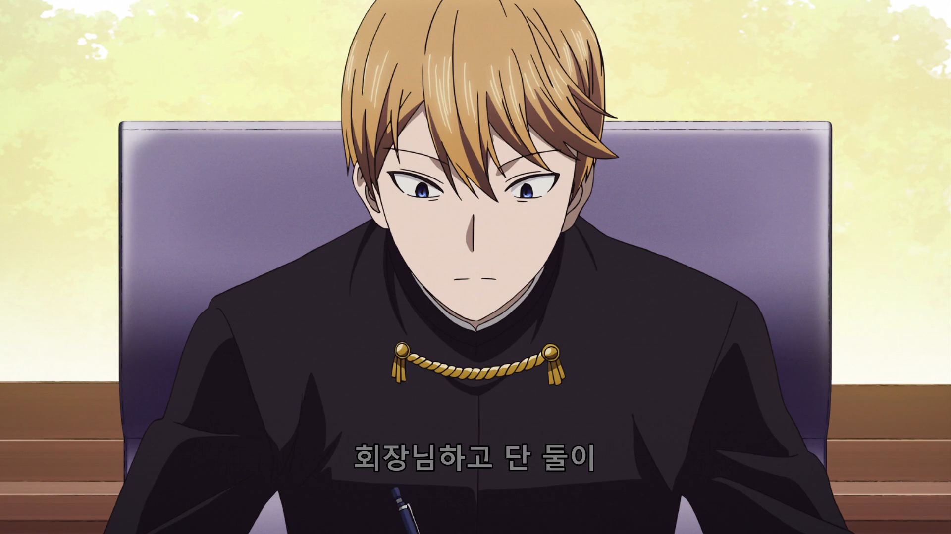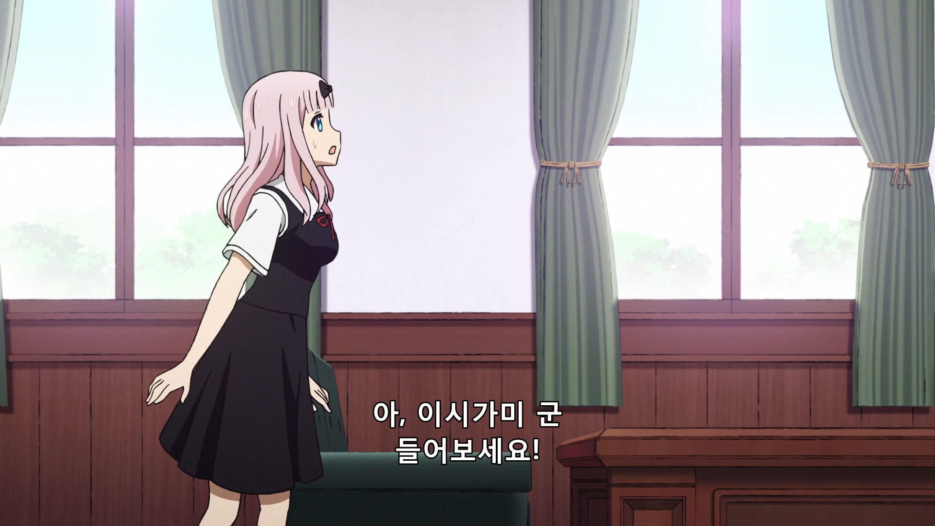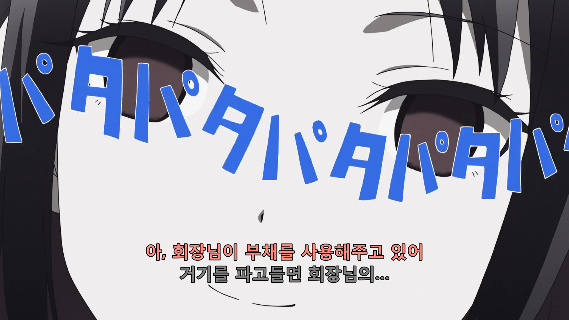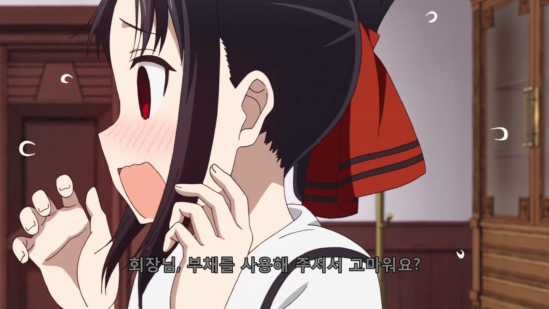 카구야를 쳐다봤다가 회장을 쳐다보는 치카